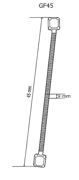 CDVI GF45 Kabeldoorvoer 450 mm – metaal F0524000004. De GF45 is de traditionele kabeldoorvoer van 45 cm lang en heeft vierkante aluminium uiteinden met 4 bevestigingsgaten per uiteinde. Dit model is nog steeds het meest gebruikte op de markt. Alle modellen hebben een metalen doorvoer voor een betere bescherming met een minimale binnendiameter van 9 mm, wat voldoende is om de meest gebruikelijke kabels voor de deurvergrendeling en -bediening te kunnen verwerken.